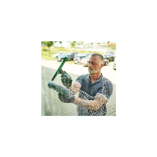 Rodo de janela Ergotec: rodo de janela profissional com design ergonómico. Com o seu cabo de dois componentes e a confortável mola em forma de S, o rodo de janela Ergotec adata-se perfeitamente à sua mão. A pega de borracha macia e profissional do rodo adere particularmente bem a superfícies irregulares, mesmo em climas de frios. O rodo de janela Ergotec com 35 cm de largura pode ser utilizado como Unger S-Guide e O S-Guide Plus. Segurança em primeiro lugar: graças ao cone de segurança, o rodo de vidros de Ergotec não roda nem se solta, quando utilizado com um cabo telescópio Unger.